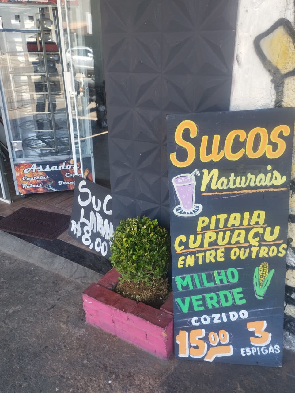 Especialidade de todos dias --> Carne Bovina-Suina - Peixes - Moquecas de peixe - Frango - Tapioca - Cuscuz - Guacamole - Nachos -Chili Beans - Caldo de piranha - Caldo verde - Caldo de cabotiã - caldo de Costela - Nhoque Macarão - Saladas no Pote - Sucos naturais - Agua de coco. O calor encontra o sabor em uma alquimia perfeita. Nossos assados são a expressão máxima do carinho e da técnica, preparados lentamente para garantir suculência incomparável e aquela crosta dourada que a arte do forno e da brasa só conseguem criar. Posso fazer algo que não esta no cardapio !!